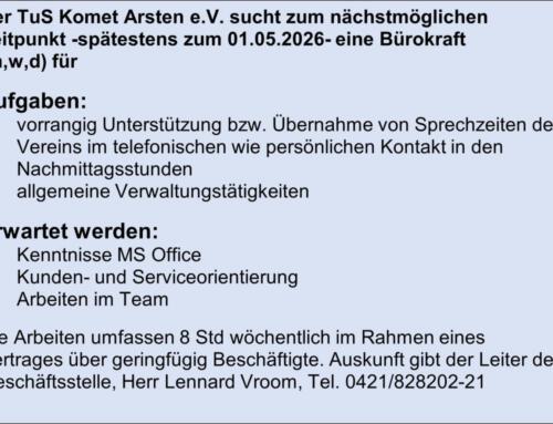 TuS Komet Arsten: Rieger, Willig; Brockhoff, Lampe, C. Lange, J. Meyer, Meierhöfer, Warschewski, Gatzka (1), Kahle (1), Zurkuhle (1), Segieth (4), Evers (5), Meinke (9/1).